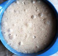 Opstart: Pisk alle ingredienserne sammen, indtil der er ikke nogen klumper. Hæld dejen i en bøtte med låg på og lad det stå på køkkenbordet i fire dage. I de fire dage skal du piske lidt i dejen et par gange om dagen. På tredjedagen smager du lidt på dejen. Hvis den smager surt, er den klar til at bage med. Hvis den ikke smager surt, lad den stå lidt længere. |